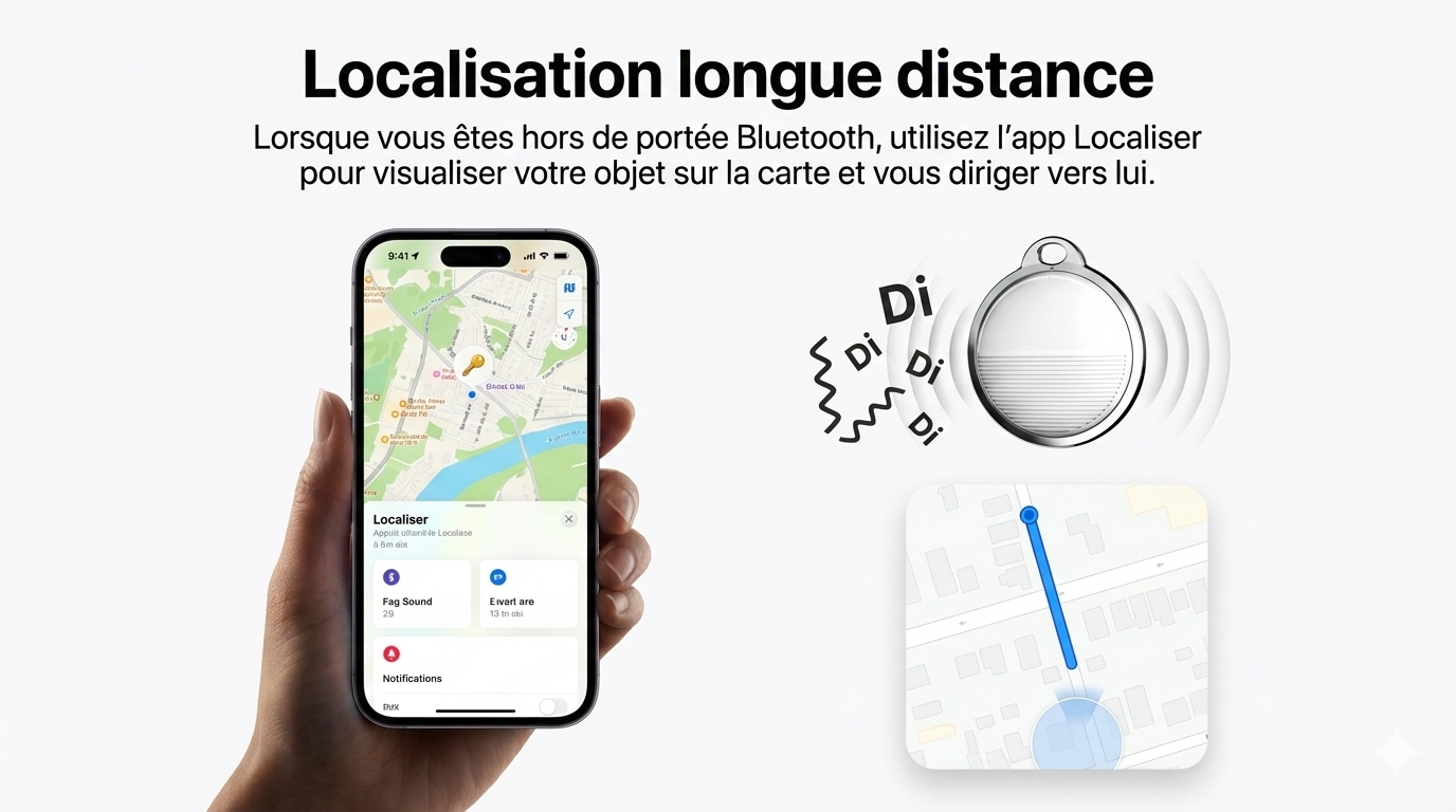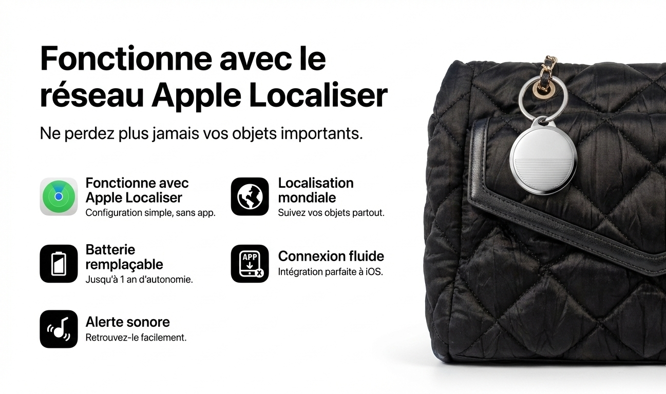 Le VigiTag™ s'intègre parfaitement à l'application "Localiser" (Find My) de votre iPhone. Pas d'application tierce douteuse, pas d'abonnement mensuel. Juste la sécurité.