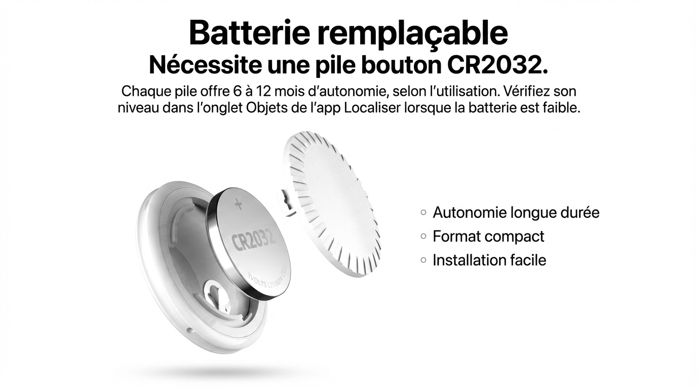 Batterie CR2032 remplaçable incluse. Dormez tranquille pendant un an entier.